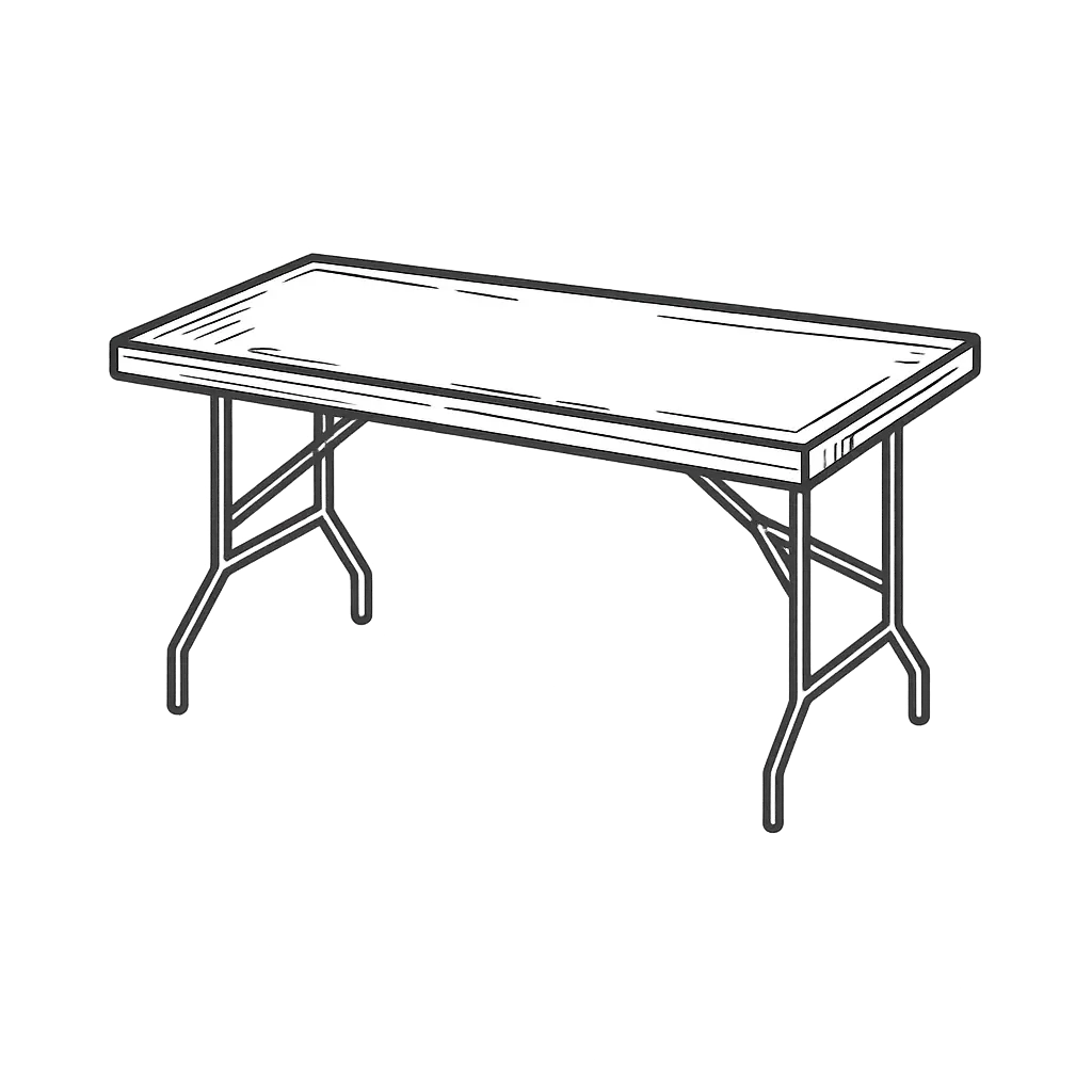 Rectangulaires 180–200 cm (6–10 pers.), rondes Ø150–Ø180 (8–12 pers.), mange-debout pour cocktails. Stables, pliantes, prêtes à dresser.