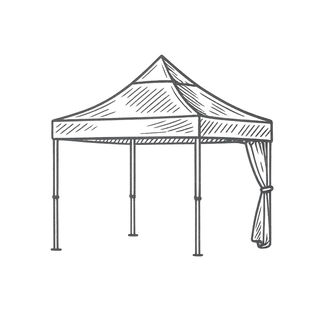 3×3 m et 3×6 m, parois coupe-vent en option, lestage et montage inclus. Éclairage guirlandes LED sur demande.